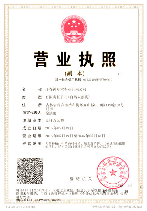 珲春神草堂参业有限公司野山参种植基地项目由珲春神草堂参业有限公司股东建设于1998年。本基地前身是现公司股东于2001年建设的“吉林省长白山绿色中药材规范化生产加工(珲春)示范园区”,该园区是吉林省政府正式下文批准的唯一的“北药基地”示范基地,园区被省政府纳入“吉林省无公害中药材规范化生产技术示范基地序列”。示范园区的建设工作及其成果得到省级领导及专家的肯定和高度评价,2004年9月通过吉林省科技厅验收并被正式授牌。2016年,为了更好的对基地进行经营和管理,公司股东徐洪雨组建了珲春神草堂参业有限公司。2020年,为了让更多人服用到高品质野山参,成立了浙江久微奢食汇健康科技有限公司,销售公司全系列产品,将“紫蕴神草”牌野山参推向全国,走向世界。
